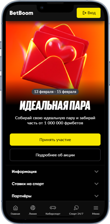 В преддверии 14 февраля букмекерская компания BetBoom запустила праздничную акцию «Идеальная пара», приуроченную ко Дню всех влюбленных. В рамках промо клиенты могут побороться за долю от общего призового фонда в 1 000 000 фрибетов. Акция ориентирована на любителей комбинированных ставок и подойдет тем, кто предпочитает собирать экспрессы из нескольких событий.