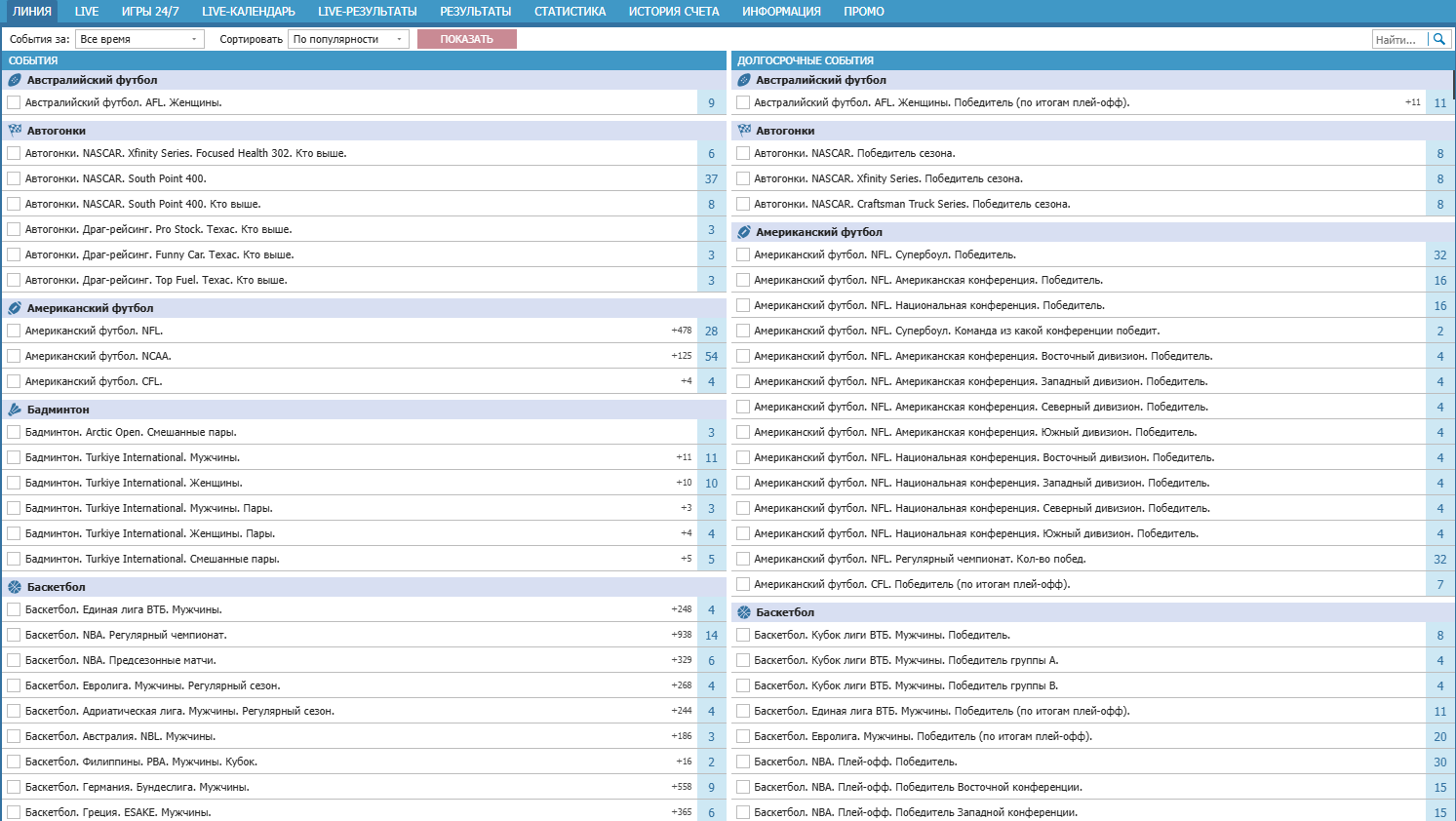 Формат ставок по системе имеет собственные правила, которые важно учитывать. В первую очередь, количество событий в купоне должно быть не меньше двух, а для некоторых вариантов требуется большее количество комбинаций. Выбирать можно исходы из различных дисциплин: футбол, теннис, баскетбол и другие.