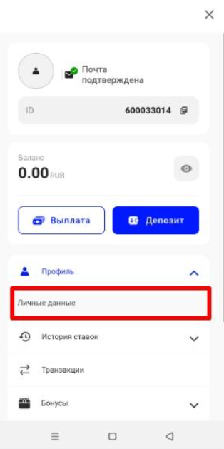 - Пройдите идентификацию любым способом в разделе аккаунта «Личные данные».