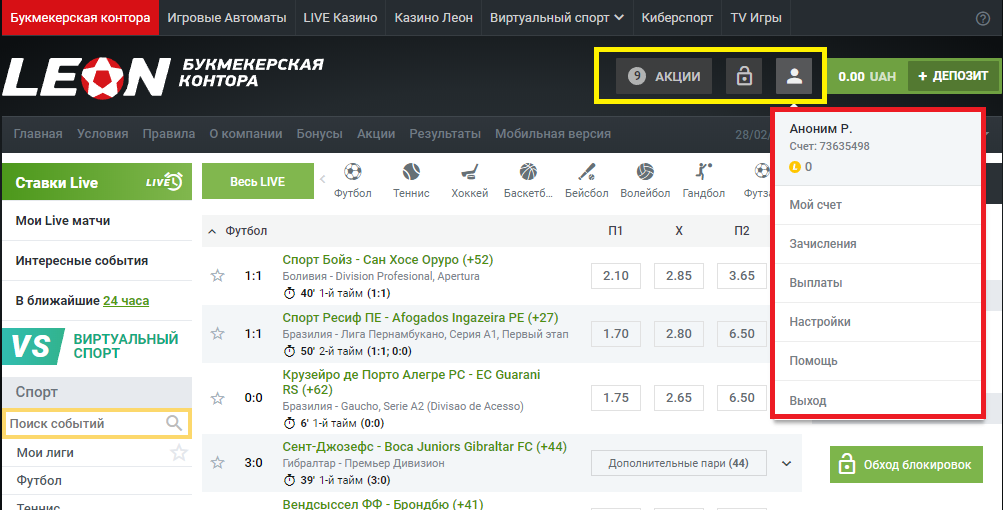 Одно из главных достоинств, выделяемых бетторами при сотрудничестве с конторой Leonbets – это удобство управления своим аккаунтом. Клиентам доступны вкладки «Ставки live», «Мои live матчи», «Мой счёт», «Зачисления», «Выплаты» и «Настройки».