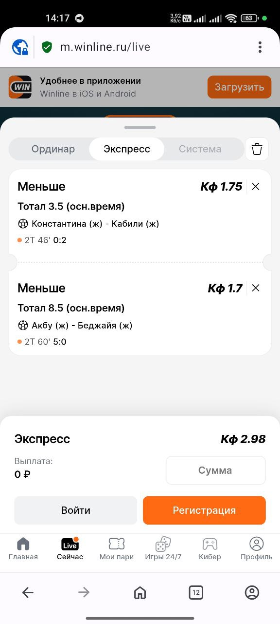 Софт от Винлайна супер, установил и сразу в бой!! Интерфейс понятнй, ставки в один клик, даже в лайве. Трансляции грузятся без тормзов, статиггстика всегда на экране. На андроиде все гладко, обновления приходят сами. Минус, уведомления иногда опаздывют на события. Лучше сайта для улицы, в метро ставлю без проблем. Пробовал другие apps, но это самое удобное.