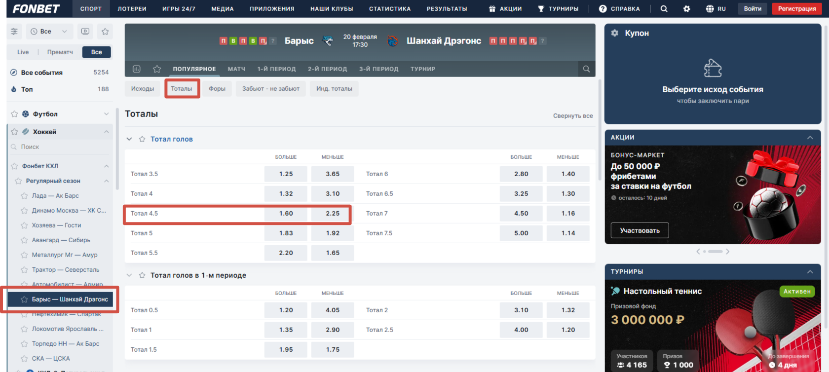 Букмекеры не слепы к турнирному положению, но и не сбрасывают со счетов фактор площадки. Официальный партнер КХЛ БК Фонбет дает на победу «Барыса» 2.35, успех «Драконов» оценивают чуть выше — 2.55. Ничья в основное время, которая в КХЛ тоже считается, болтается в районе 4.20. Разница небольшая, и она лишний раз подчеркивает: статус хозяев тут не дает огромного преимущества. По тоталам рынок занял выжидательную позицию. Тотал больше 4.5 шайб котируется за 1.60, меньше — за 2.25.
