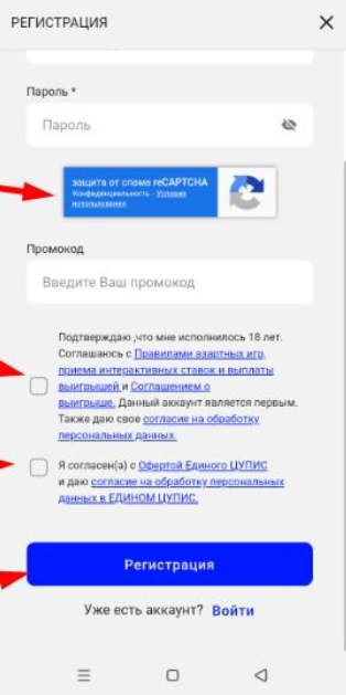 - Пройдите капчу, согласитесь с правилами и нажмите «Зарегистрироваться».