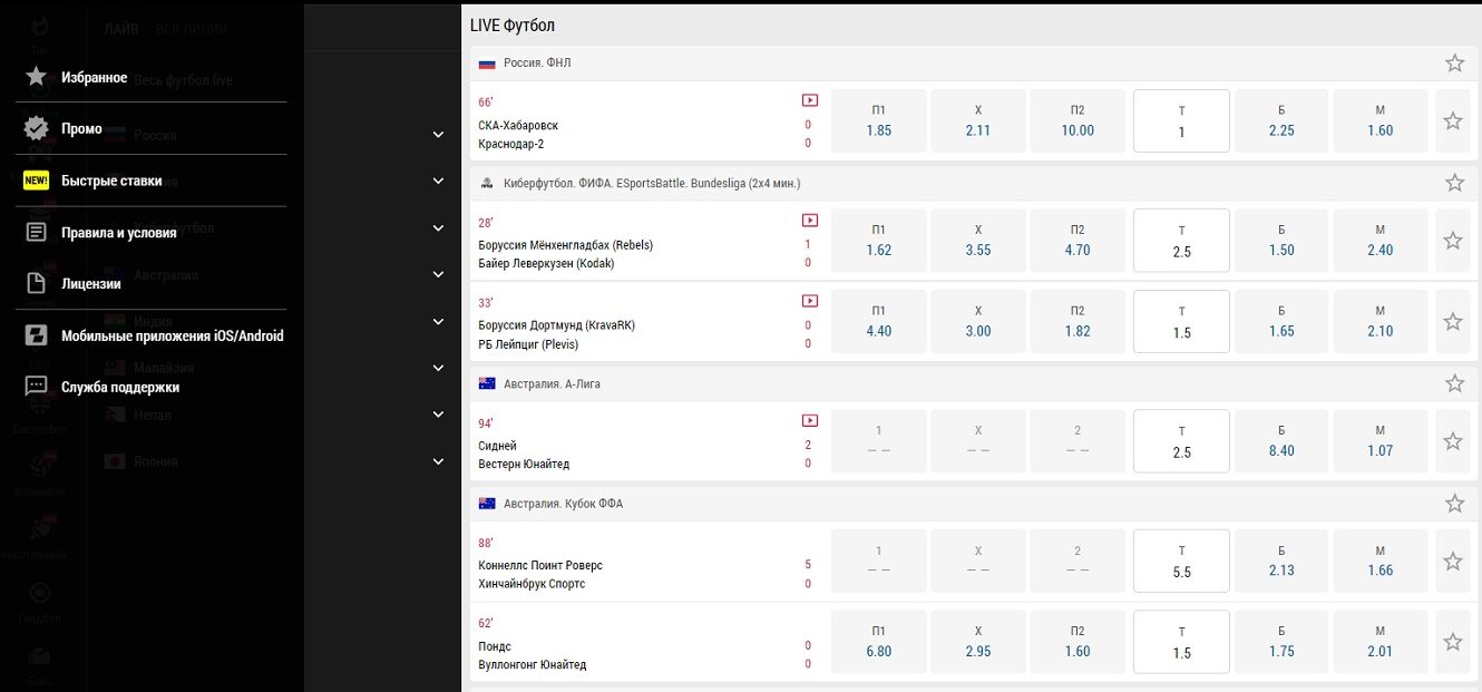 - Лайв ставки;