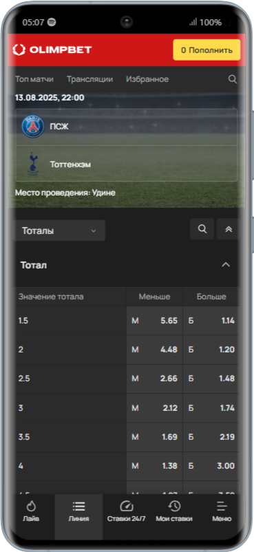 Виды тоталов в Olimpbet