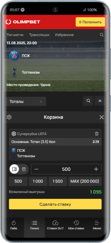 - Как сделать ставку на тотал в Олимпбет