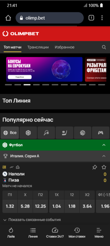 Программу Олимпбета установил сразу, никаких проблем. Работает быстро, интерфейс простой, разберется даже новичок. Все разделы под рукой, удобно переключаться между линией и лайвом. Нравится, что нет лишней рекламы, только то, что нужно для игры.