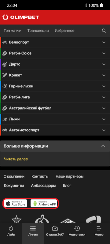 При этом, важно знать, что приложение букмекерской конторы Олимп, скачать можно с самого сайта, а у пользователей яблочных телефонов, установка будет производиться через официальный магазин App Store, ссылка на который также находится на сайте БК.